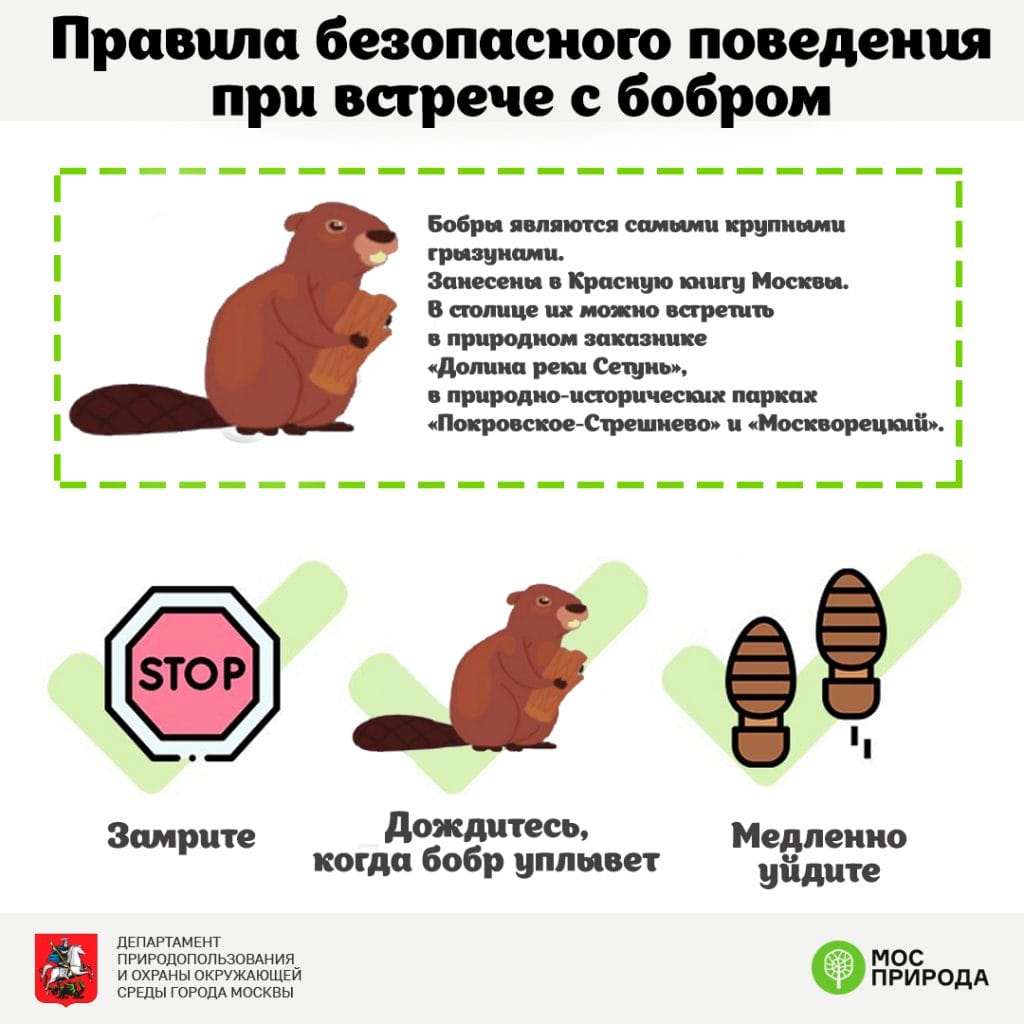 Мосприрода подготовила памятку «Правила поведения при встрече с бобром»