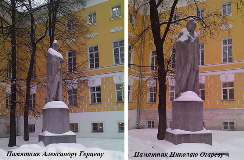 Так во дворе старого здания Московского университета на Моховой по сторонам парадного шестиколонного казаковского здания «со второй попытки» появились два памятника революционным демократам.