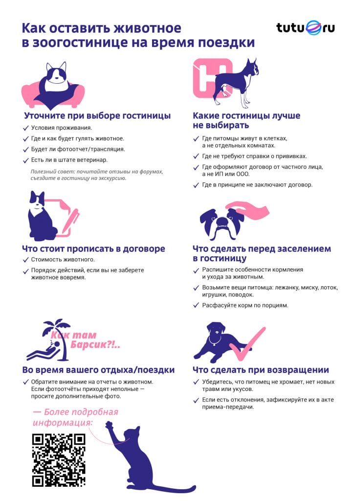 Подробную информацию о том, как работают зоогостиницы, можно найти по ссылке.
