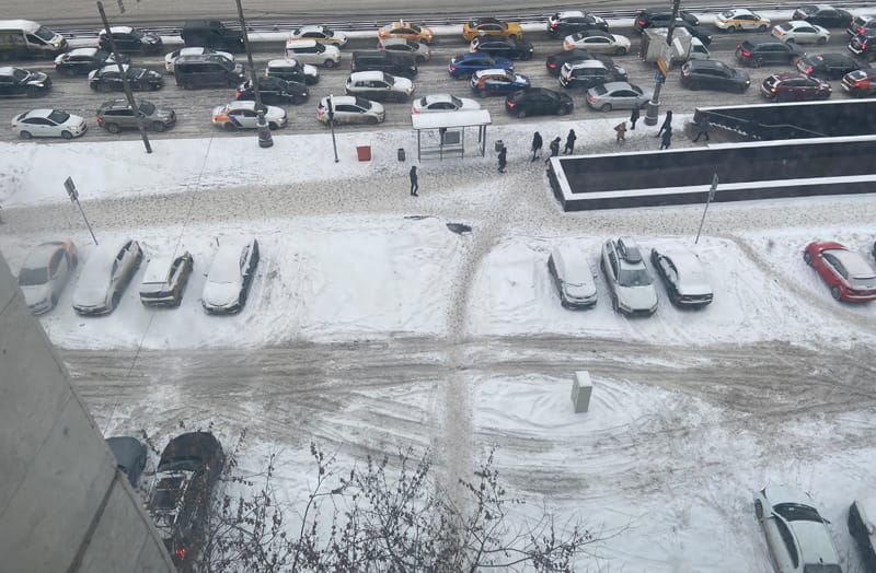 Бордюр, надо признать, был низенький. Нахальные машины с высокой подвеской умудряются парковаться и на более высоких тротуарах. Но в нашем случае дополнительным сдерживающим фактором выступал заборчик, и первое время водители по привычке на дорожку не заезжали. Ну а когда уровни парковки и тротуара благодаря снегу сравнялись – начался форменный беспредел. В самом деле, какое счастье – единое большое парковочное пространство! И плевать, что где-то там, под снегом, прячется пешеходная дорожка! И что это единственный путь от пешеходного перехода к зданию, которым ежедневно пользуются сотни людей!