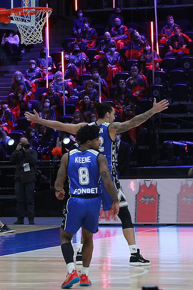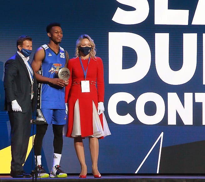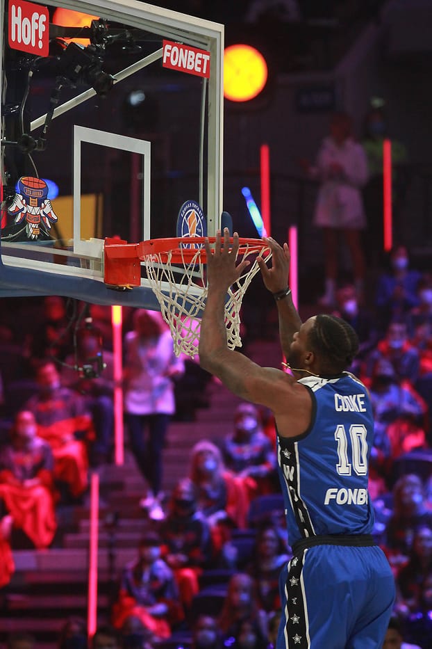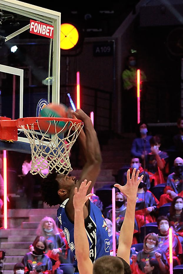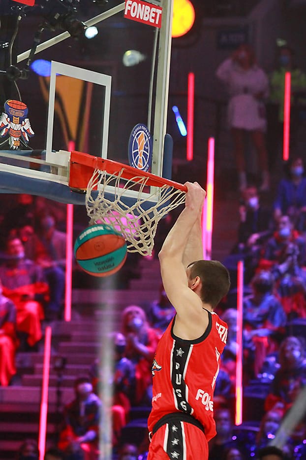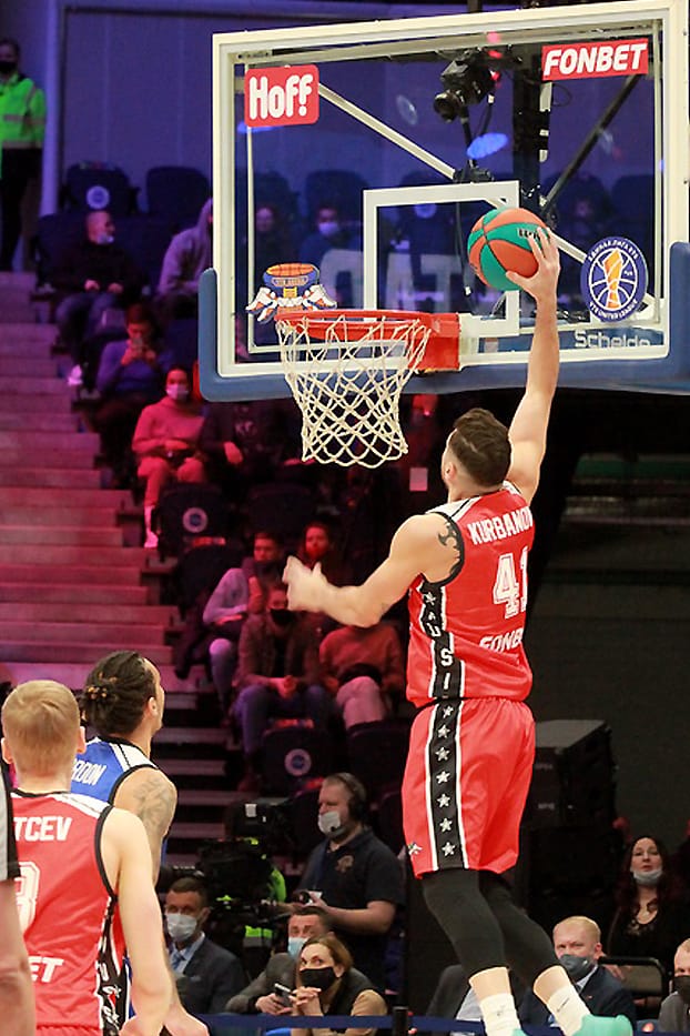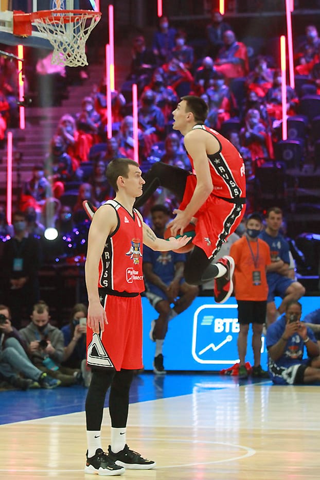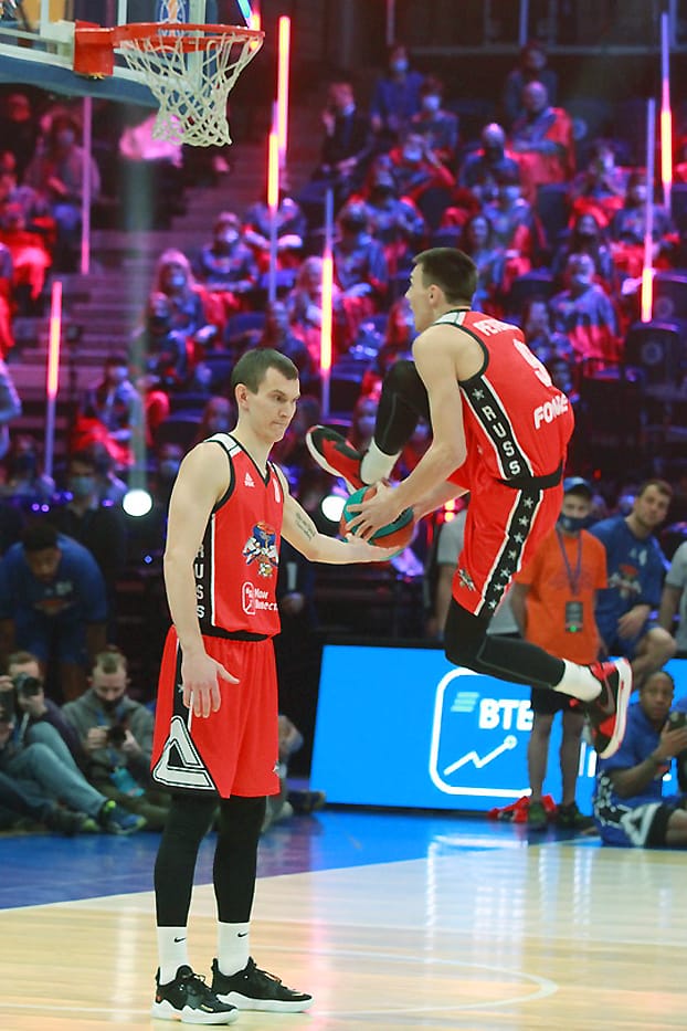 Самый популярный человек в стране – Иван Ургант провел Матч звезд в пятый раз, и у него снова это вышло потрясающе. На арене царила праздничная обстановка: призы для зрителей, знаменитости у паркета и, главное, конкурсы мастерства. На разогреве у главного события вечера выступили мастера данков. В финал из четверки претендентов вышли прошлогодний победитель Александр Петенев из «Автодора» и американский защитник «Енисея» Тайюс Бэттл, который уверенно и победил. В конкурсе «дальнобойщиков» двукратный победитель Виталий Фридзон дал возможность попытать счастья и другим. В финале защитник «Нижнего Новгорода» Артем Комолов набрал 16 очков, но его конкурент Джеремайя Хилл из «Астаны» совсем был «мазилой» и сам же отдал викторию россиянину.