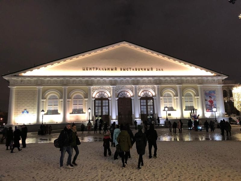 - С площади Тверская Застава можно увидеть неосвещенное здание Белорусского вокзала.