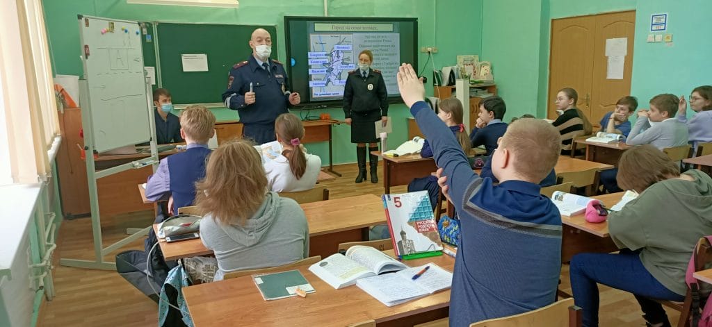 На уроках инспектора поговорили с ребятами о правилах дорожного движения. Рассказали о навыках безопасного поведения во дворе, на оживленной улице, в транспорте. Напомнили о том, что в темное время суток на одежде и сумке должны быть светоотражающие элементы. Инспектора по делам несовершеннолетних дополнили урок: разъяснили ребятам их права и обязанности, рассказали об административной и уголовной ответственности за совершение преступлений и правонарушений. Учителя получили ценные рекомендации: как лучше рассказывать детям о правилах дорожного движения.