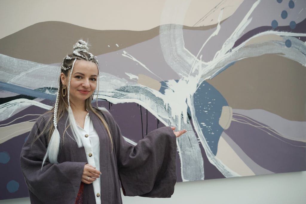 По ее словам, выполненные ею работы – о гармонии, они созданы для помещений с минималистичными интерьерами. Картины, наполненные дзен-энергией, можно было купить за 210 000 рублей.