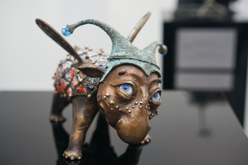 Скульптор, участник выставки Алла Човган свои работы выпекает. Объекты выполнены из бронзы, серебра, стекла и нескольких видов патины. По ее словам, образы будущих работ ее посещают в снах. Физик-математик по образованию, Човган уже около 20 лет занимается скульптурой.