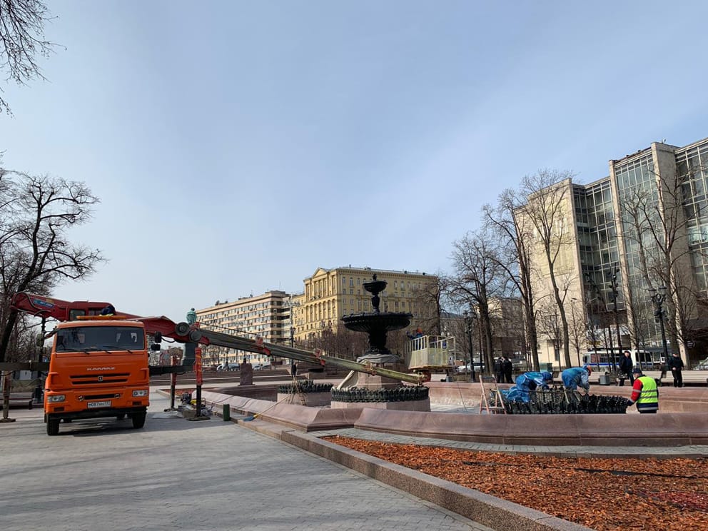 Пушкинский фонтан в Москве привели в порядок после зимы. Его чугунные элементы покрасили специальной кузнечной краской, способной предотвратить появление ржавчины. Особое внимание было уделено маскаронам – декоративным элементам на чашах. Работы выполняла бригада ГБУ «Гормост».