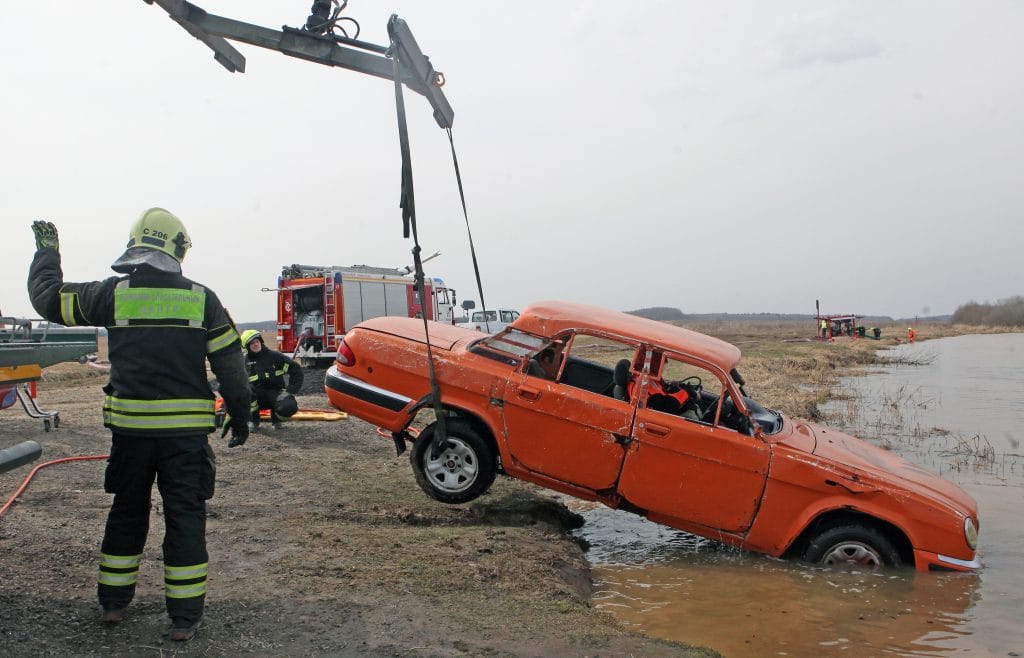 Вдруг поступает сообщение, что автомобиль с пассажирами упал в воду, люди не могут самостоятельно эвакуироваться. На место происшествия прибывает аварийно-спасательный автомобиль и эвакуатор АМПП «Московский паркинг». Особенностью аварийно-спасательной службы Департамента ГОЧСиПБ является наличие аттестованных спасателей на все виды работ, оснащение современным оборудованием, позволяющем проводить работы в различных условиях, в том числе и под водой. Для поддержания дыхания человека в автомобиле под водой спасатель одевает на пострадавшего «маску спасаемого» подключенную к дыхательному аппарату. Когда человек начинает дышать, незамедлительно начинаются работы аварийно-спасательным инструментом по деблокации пострадавшего и передача его медицинским работникам ЦЭМП, затем при помощи эвакуатора автомобиль извлекается из воды.