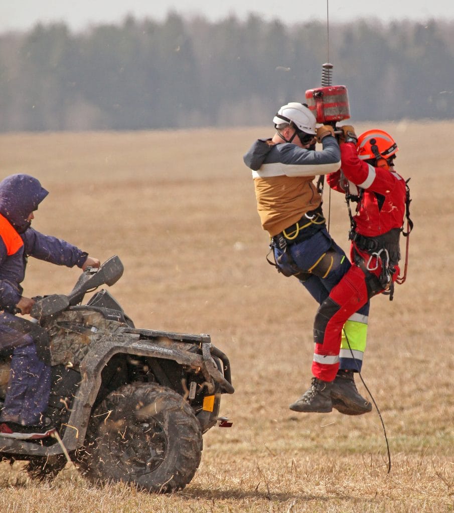 Одновременно спасатели, совместно с администрацией поселения, проходят по дворам и сообщают жителям об эвакуации, также для оповещения используется звуковая пушка направленного действия «Сирин». Кинологический расчет с помощью собак осуществляет проверку подтопленных строений по поиску пострадавших людей. На крыше одного из домов обнаруживают человека, к нему тут же направляется вертолет КА-32 Московского авиационного центра с десантно-поисковой группой. Спасатели ГКУ МАЦ десантируются при зависании вертолета на малой высоте и с использованием лебедки спасают пострадавшего с крыши жилого дома.