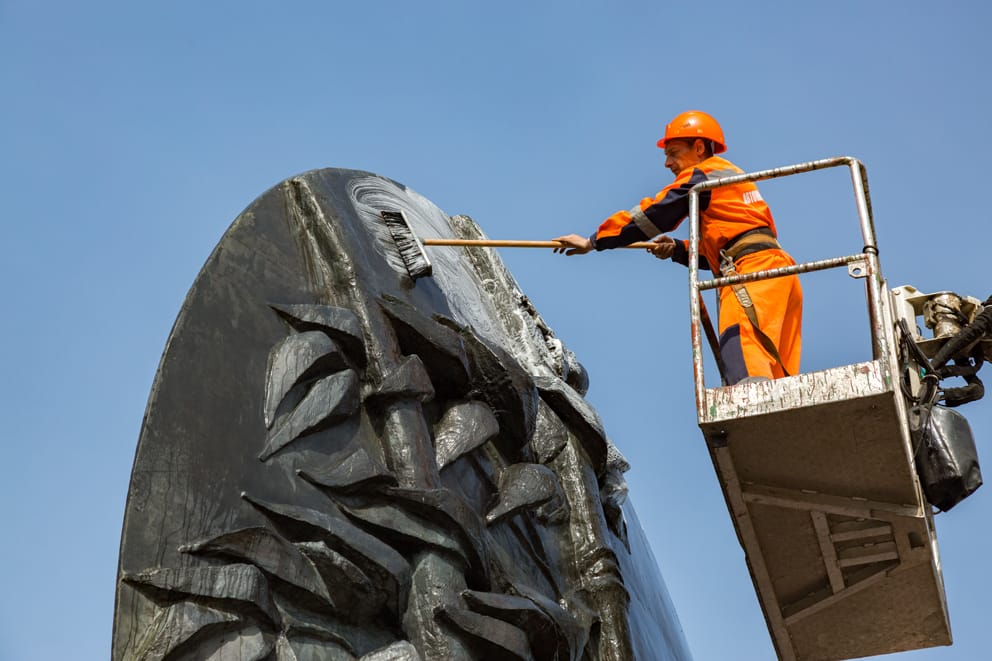 Столичные коммунальщики проводят ремонт, покраску и очистку фасадов зданий. До конца месяца будет очищено 2 тысяч инженерных сооружений, 1,1 тысяч памятников, фасады и цоколи зданий, все элементы дорожно-транспортной инфраструктуры.