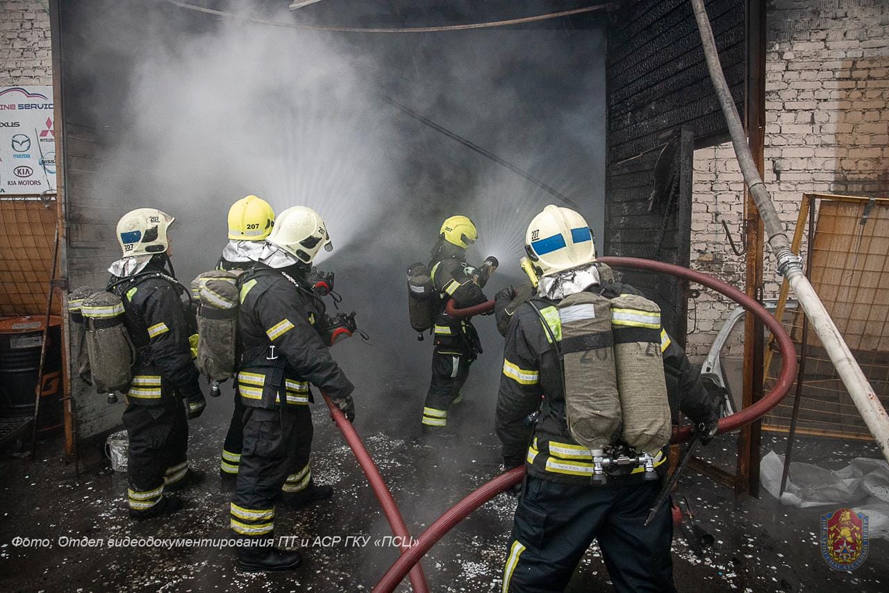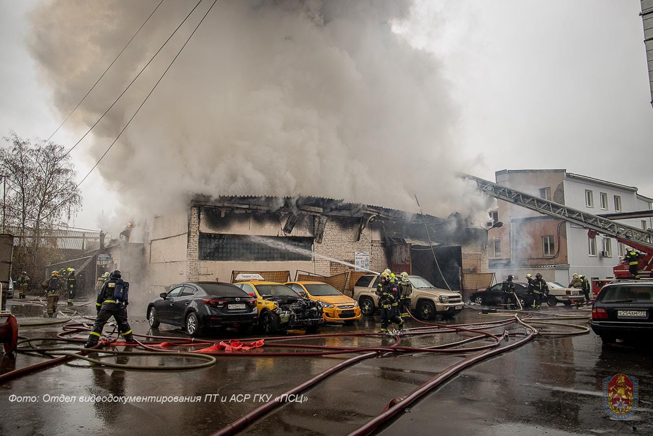 Площадь пожара в автосервисе на улице Ермакова Роща (Пресненский район, ЗАО) составила 300 квадратных метров.