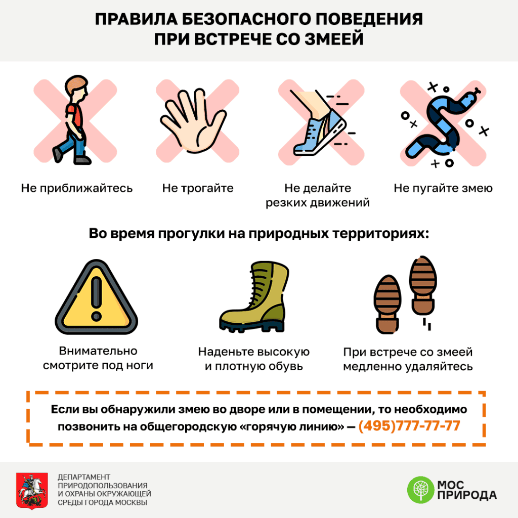 Не стоит приближаться или пугать змею, делать резкие движения. Находясь на природной территории, необходимо внимательно смотреть под ноги. Решив передохнуть на пне или повалившемся дереве, сначала осмотритесь, постучите по нему.
