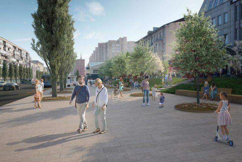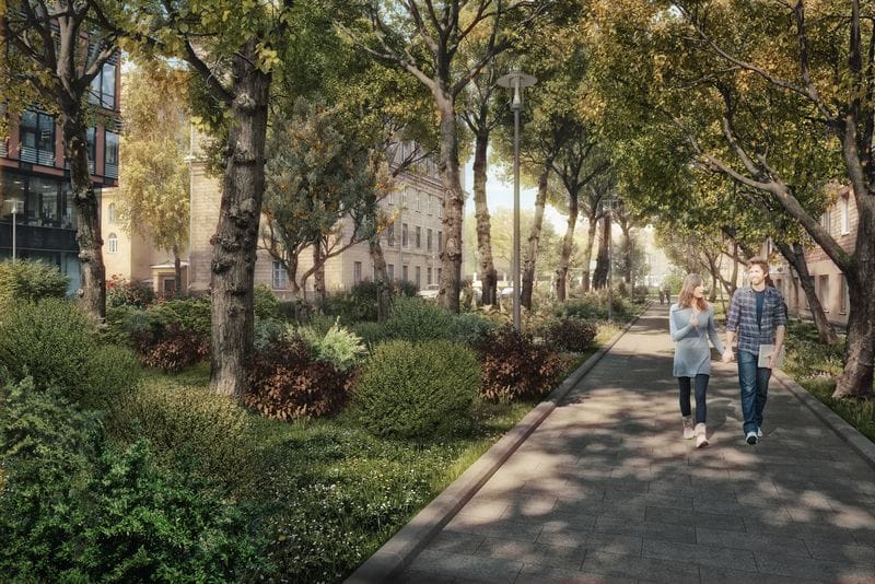 Завершающим этапом работ станет высадка зеленых насаждений: 70 новых деревьев-крупномеров – лип, кленов, рябин, декоративных яблонь, и более 1300 кустарников. Деревья и кустарники будут отделять тротуары от проезжей части, создав тихую и безопасную пешеходную зону.