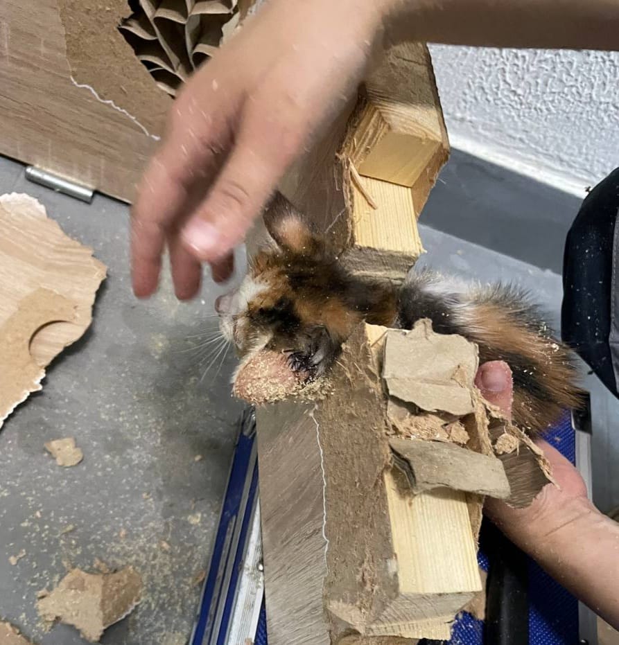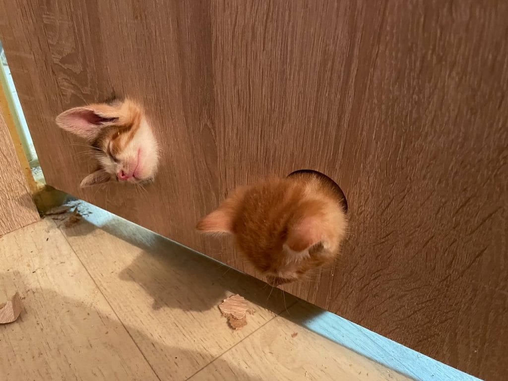 «К нашему приезду котятки совсем ослабли, у хозяйки в глазах стояли слезы. Малыши плотно ввинтились в отверстия, выдернуть, вывернуть, вытащить их без ущерба для здоровья было невозможно», – рассказали представители СпасРезерва.
