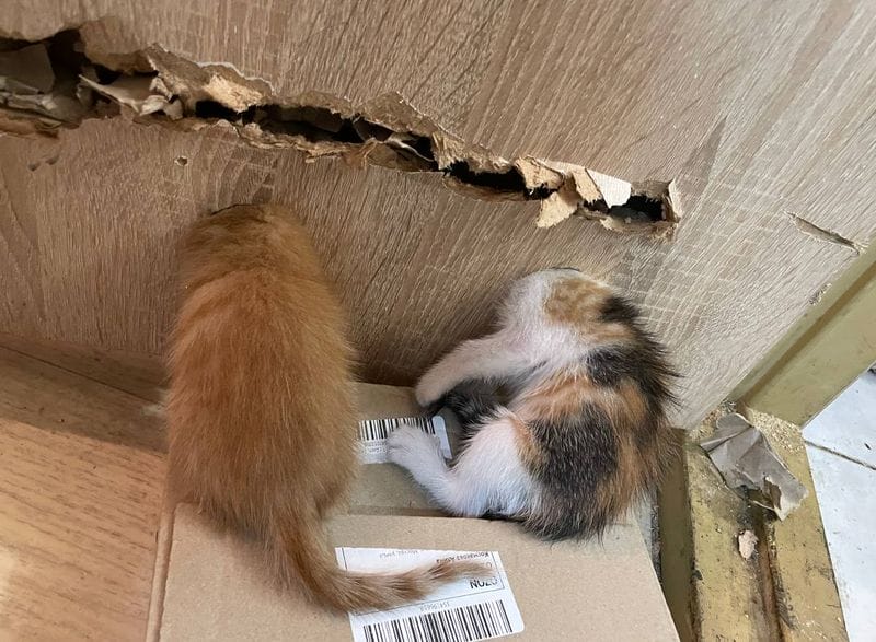 Затем «экипаж в четыре пары рук приступил к ювелирному выпиливанию сорванцов». Работу спасателей осложняло то, что испугавшись громких звуков, котята пытались вырваться, вертелись и пытались царапаться.