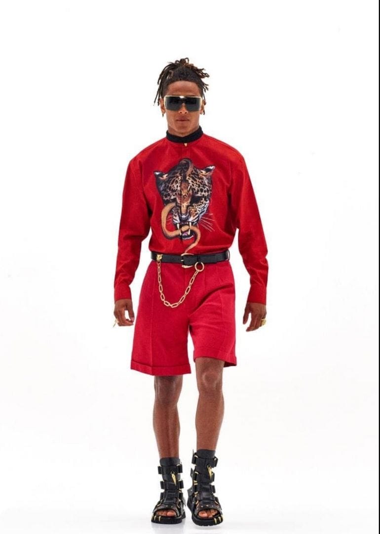 Возможно, дело в легендарном боксере Майке Тайсоне, который снялся для рекламной кампании сезона весна-лето – 2022 от Roberto Cavalli. А может быть, дело в лейтмотиве самой коллекции, которым стал собственно бокс. Тут и боксерские бинты, и халаты, которые надевают спортсмены между раундами, и шёлковые шорты, а ещё – роскошные и вполне себе мужественные высокие сандалии, сочетающиеся как с шортами, так и с брючным костюмом. Все это дышит настоящей мужской харизмой и придает совершенно новый смысл необычной для мужской одежды расцветке и украшениям.