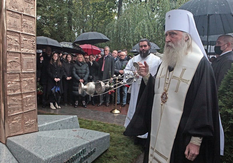 Панихиду совершил архиерей Русской православной церкви, митрополит Каширский, викарий патриарха Московского и всея Руси, председатель Синодального отдела по монастырям и монашеству митрополит Феогност. По завершении службы он сказал: «Только то, что мы отдаем – по-настоящему наше. Этот памятник, гениально задуманный, показывает, насколько он был богатый человек, сколько Юрий Михайлович сделал и оставил на земле… И Господь дал нам возможность быть рядом с таким человеком».