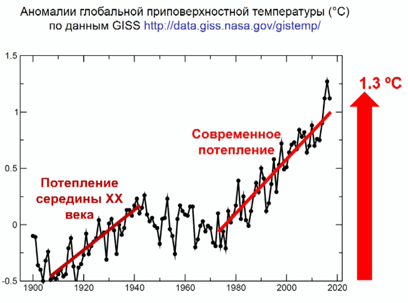 Потепление, которое наблюдается с середины XX века, в основном связано с антропогенным усилением парникового эффекта.