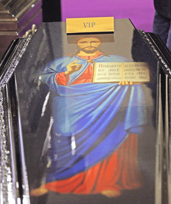 В первый день мероприятия состоялся показ творческих костюмов по авторскому проекту Микаэля Мшецян «Лик ангела». Причем модели не дефилировали по подиуму, а лежали в гробах, которые проносили мимо гостей. Девушки честно пытались притворяться усопшими, хотя получалось не очень… А как вам VIP-гроб, расписанный ликами святых? А урна в виде матрешки? А еще желающие могли сфотографироваться на память с ростовой куклой: веселый розовощекий юноша приплясывал в поролоновом «гробу» с рюшечками. Печаль, конечно, развеется, но хочется спросить: вы уважаете того, кого провожаете?
