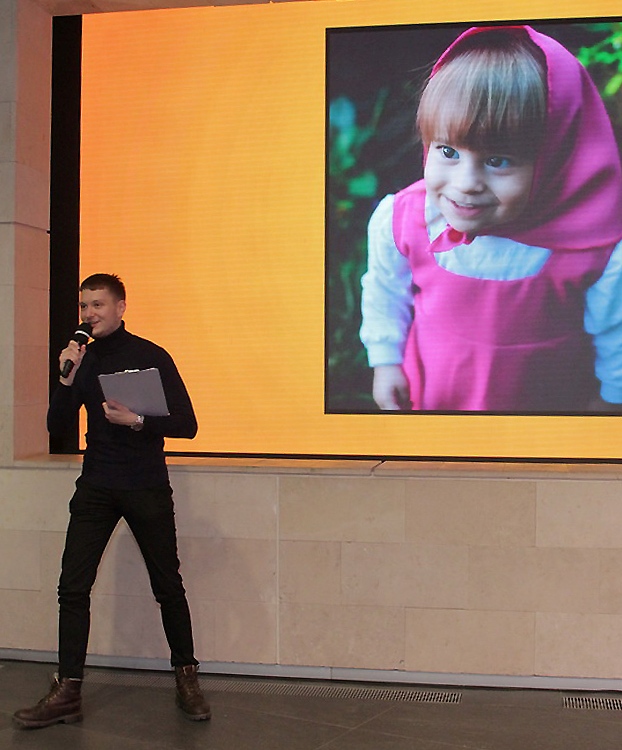 В церемонии открытия тематической зоны в Зарядье приняла участие команда создателей мультсериала – генеральный директор «Маши и Медведя» Владимир Валиев и директор студии Animaccord Илья Трусов. За музыкальную составляющую церемонии отвечала юная Юлия Зуникова – «голос» Маши из мультика.