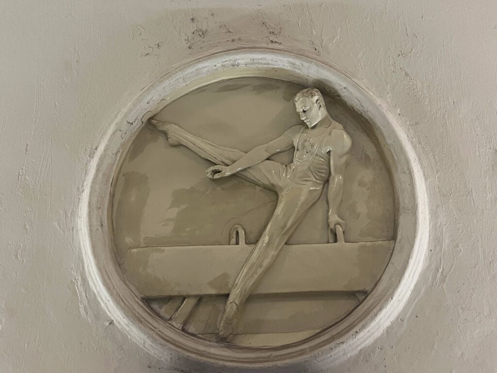 То же касается медальона с изображением атлетки. Прототипом могла стать Александра Чудина – трехкратная чемпионка мира, четырехкратная чемпионка Европы и семикратная чемпионка СССР. Но, опять же, в 1937 году она только начинала свою карьеру. Поэтому можно только предполагать, что на барельефе изображена именно она.