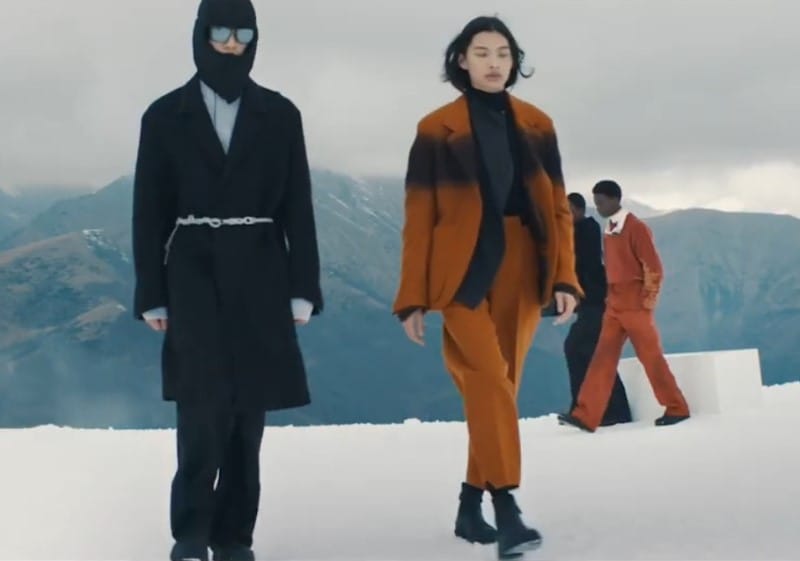 Теперь же перед нами и вовсе возникли мужские куртки, парки и плащи от Zegna с капюшонами и солнечными очками. И мужчина Zegna (кстати, в результате недавнего ребрендинга слово Ermenegildo исчезло из названия) стал более спортивным, модным и готовым к путешествиям. Так что коллекцию осень-зима 2022-2023 даже отсняли в горах, где именно такие обновки смотрятся наиболее аутентично. Интересно, что новый логотип Zegna оранжевого цвета, видимо поэтому этот цвет так часто встречается в новой коллекции.