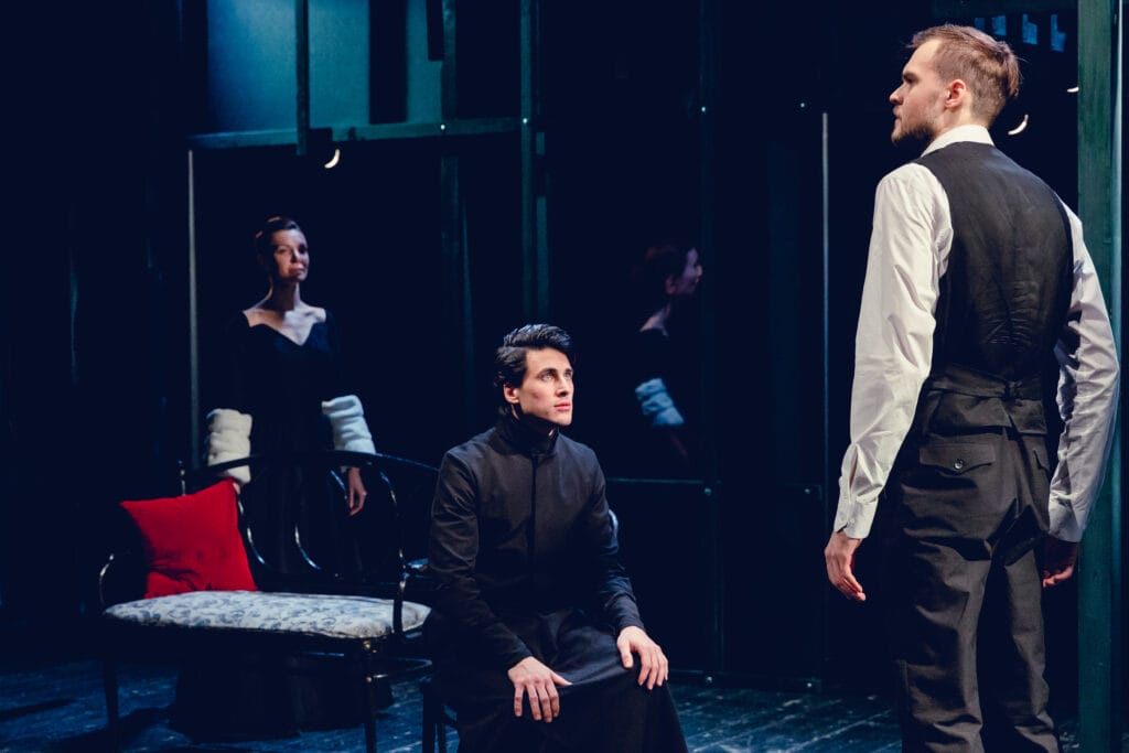 Этот спектакль в целом чем-то напоминает океан, волны которого одна за другой выкатываются на берег, проявляясь в своей неповторимой и законченной форме. Совсем как люди. Шапошников изящно уводит Ивана, которого уже полюбили зрители, в тень, выдвигая теперь на первый план Дмитрия. Но мы, сидящие в зале, прекрасно помним, какая буря страстей таится в Иване, в его метущейся душе и обращенной к нам спиной фигуре, и это, конечно, работает на объемность восприятия.