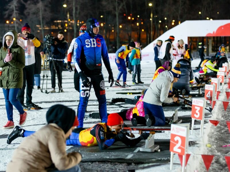 После мастер-класса с чемпионом состоялась импровизированная биатлонная эстафета для директоров столичных школ.