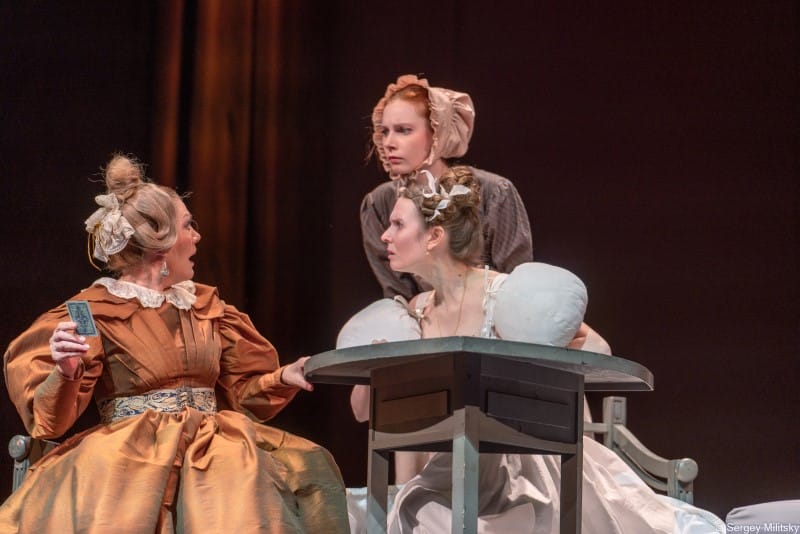 В театральной афише есть спектакль «Женитьба» по пьесе Николая Гоголя, которая в свое время вызвала много пересудов, критики и обсуждений. Написана она в 1842 году, и автора тут же обвинили, что он описывает жизнь «маленьких людишек», что тогда было не принято. Николай Васильевич в большинстве своих произведений героями делал мелких чиновников или купцов, рассказывал об их проблемах, заботах, интересах и привычках, при этом он ничуть не приукрашивал действительность. Главная героиня повести – Агафья Тихоновна (актриса Елена Щукина), дочь купца, ищет мужа с помощью свахи Феклы Ивановны (засл. артистка РФ Мария Остапенко) достойного жениха.
