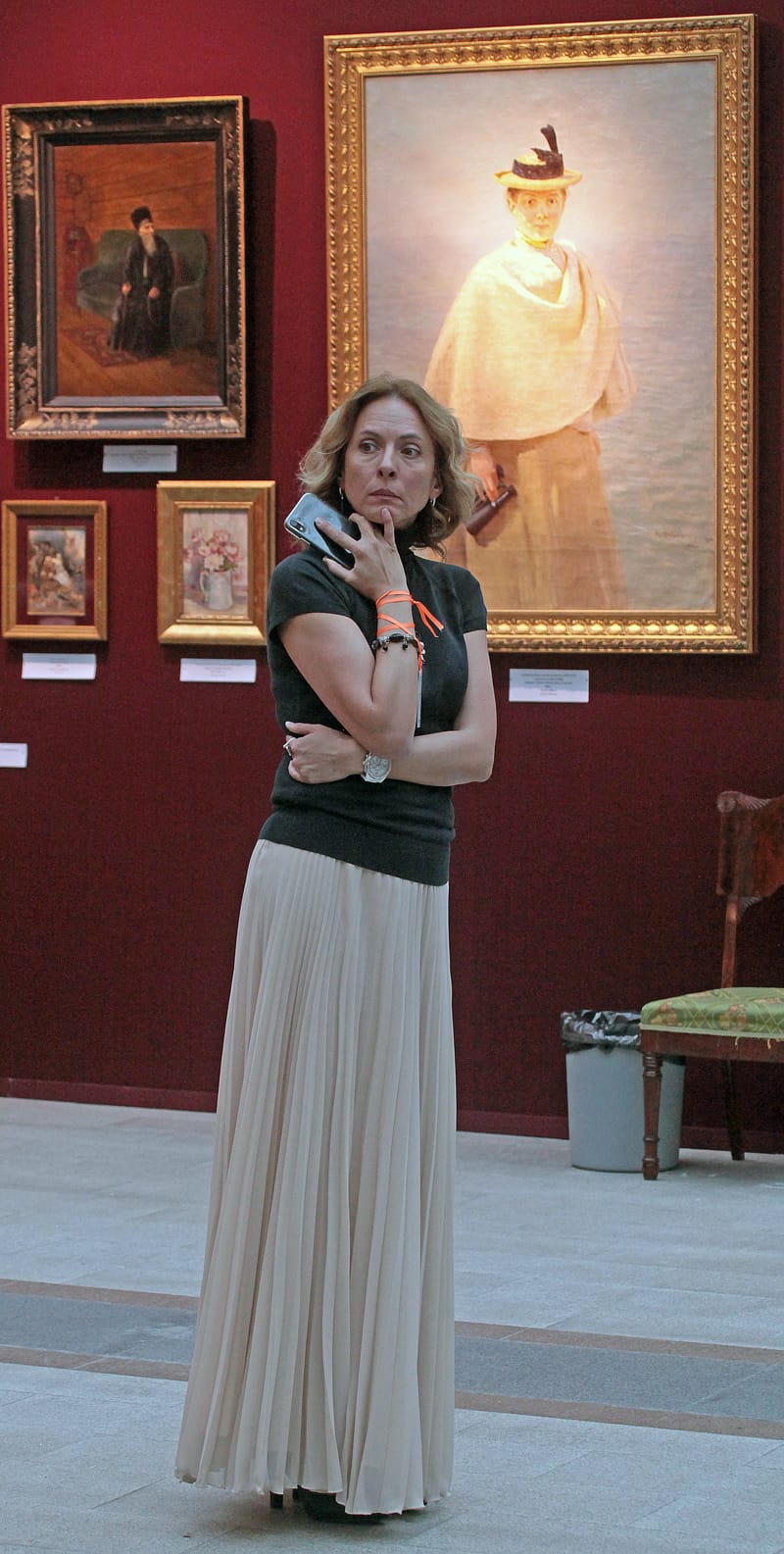 Прекрасных работ здесь действительно много: Айвазовский, Бурлюк, Кончаловский, Целков, Рабин, Комар и Меламид. Вот «Портрет женщины с букетом цветов» кисти Николая Суетина, ученика Малевича – в авторской супрематической раме. В каталоге выставки картина обозначена как последняя, незавершенная работа художника. Дамы с восторгом рассматривают личный туалетный прибор императрицы Марии Фёдоровны. Говорят, что шкатулка всё еще хранит аромат ее духов. Специалисты отмечают натюрморт Хруцкого: «Работ этого мастера практически нет в частных коллекциях, а это наш главный художник натюрморта», – заметила руководитель ярмарки «Арт Москва» Наталия Корень.