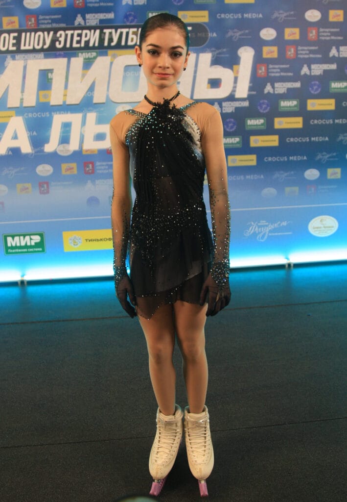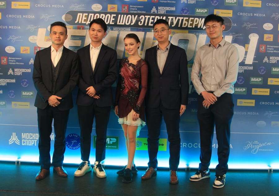 Шоу Туберидзе – это уникальная «Кармен» от Евгении Медведевой, тайна макияжа (из синего в зеленый) от Мориса Квителашвили, эксклюзив постановки от Камилы Валиевой, потрясающий эффект перевоплощений от Анны Щербаковой и речь «Русской Ракеты» Александры Трусовой, которая выступила с новой постановкой.