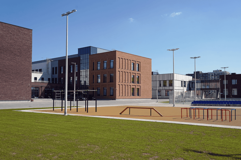 Между комплексами ЦМШ и МГАХ расположена общеобразовательная школа на 300 мест. Занятия в ней идут.