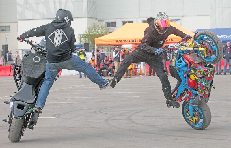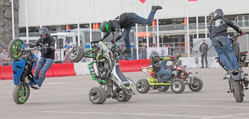 На Ходынском поле прошел показ ретро-мотоциклов и современных супер-тюнингованных байков, а также эксклюзивных моделей автомобилей. Одним из главных событий праздника стало мотошоу. Разогнавшись до максимальных скоростей, райдеры отталкивались от специального трамплина и взлетев на высоту нескольких метров демонстрировали филигранные трюки.