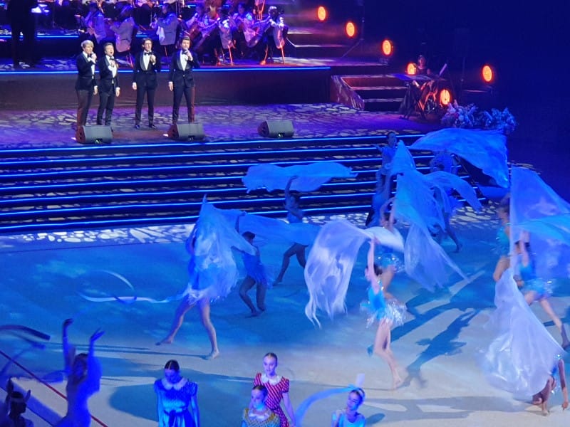 Сильнейшие спортсменки национальной сборной в одном из красивейших видов спорта под музыкальное сопровождение из песен военных лет и популярных композиций в исполнении группы «Кватро» и «Оркестра XXI века» под руководством Павла Овсянникова показали уникальное гала-шоу, которое заставило некоторых зрителей прослезиться, вызвало бурю эмоций и море аплодисментов.
