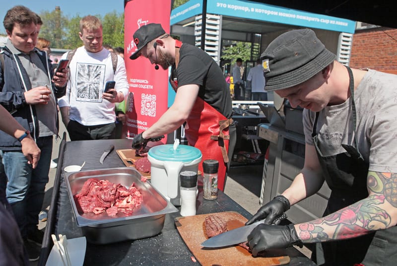 На фестивале также можно попробовать еду лучших мясных ресторанов, которые не преминули представить свои фирменные блюда на празднике огня и мяса.