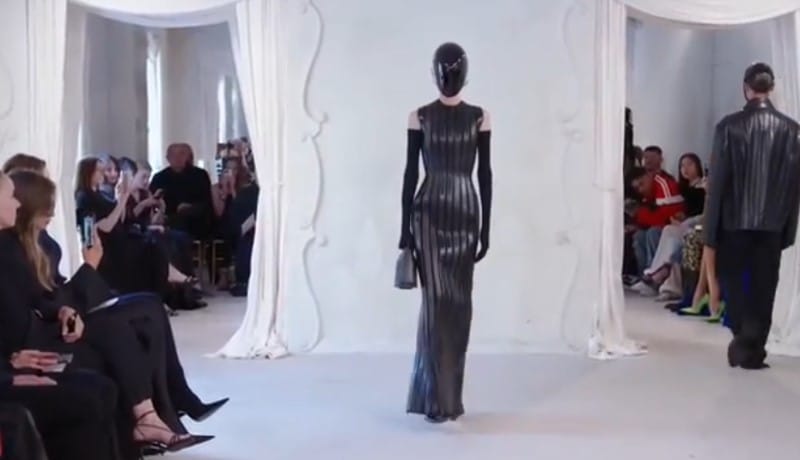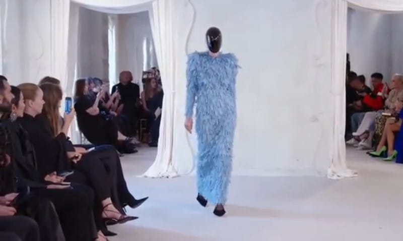 Начали шоу модели в плотных масках-шлемах, разработанных при участии Mercedes, они вышагивали под знаменитый трэк “Je t’aime”, который звучал прямо из их сумок: последней коллаборации Bang&Olufsen и Гвасалии. Аксессуар представляет из себя и музыкальную колонку и сумку одновременно. Причём с сумками-колонками выходили не только девушки, но и мужчины. И действительно, какой нынче кутюр без высоких технологий?