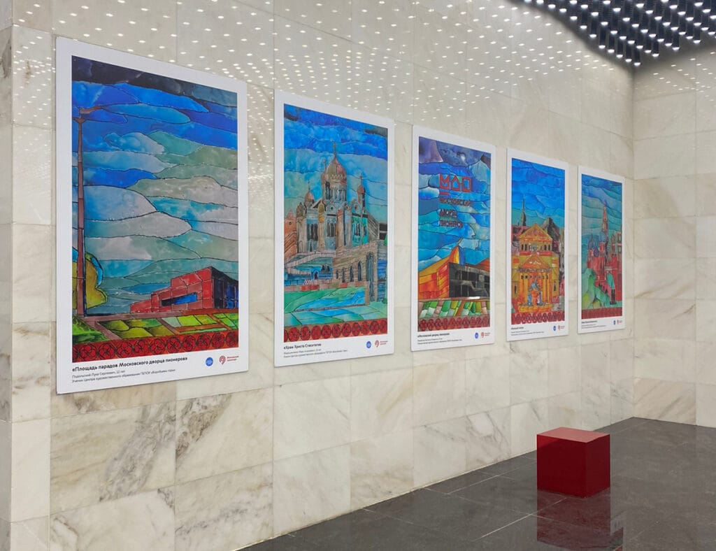 Ребята нарисовали Красную площадь, храм Христа Спасителя, ВДНХ, Большой театр, храм Василия Блаженного, МГУ имени М. В. Ломоносова и Московский дворец пионеров. Работы детей можно будет увидеть в нижнем вестибюле эскалаторной галереи в течение месяца.