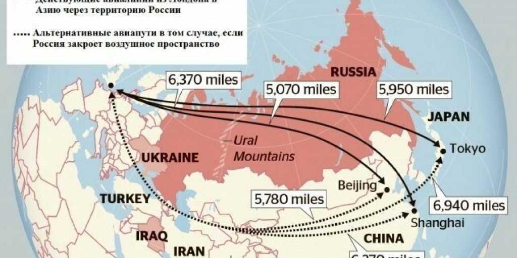 Самый прямой маршрут из Лондона в Токио, очевидно – над Сибирью, но поскольку это воздушное пространство было закрыто, авиакомпаниям пришлось избрать иной путь — просто развернуться в другую сторону.