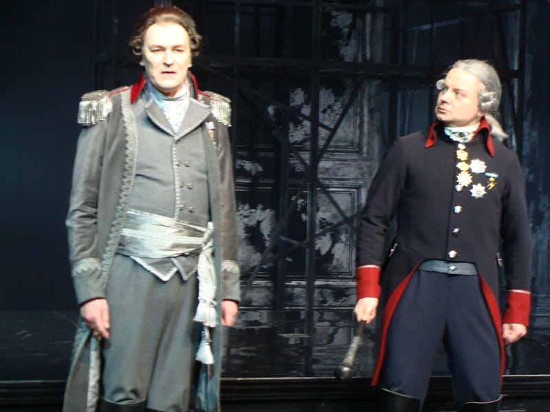 Самое интересное, что Карташёв играл роль графа Палена еще в симоновской постановке тридцать лет назад на сцене в Калошином переулке. Но тогда его герой был совсем иным. Он был романтичнее и… поэтичнее, если так можно выразится о «пане-идеологе» дворцового переворота. Хотя и в симоновском спектакле Пален тоже являлся главной заводной пружиной развернувшейся трагедии.