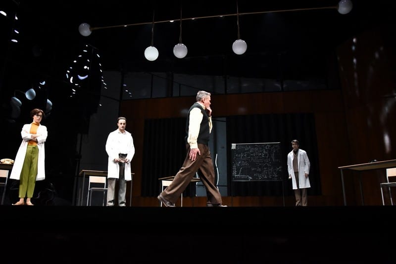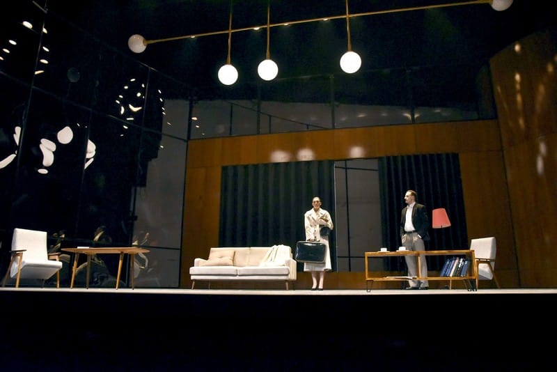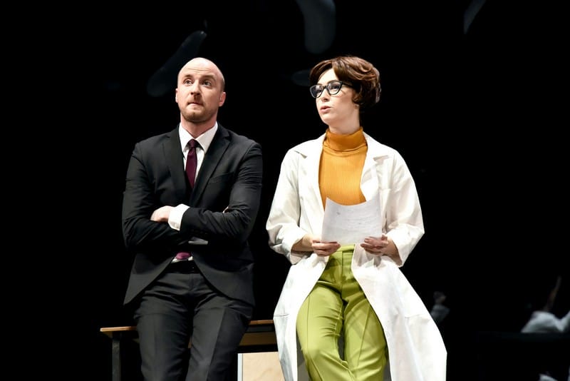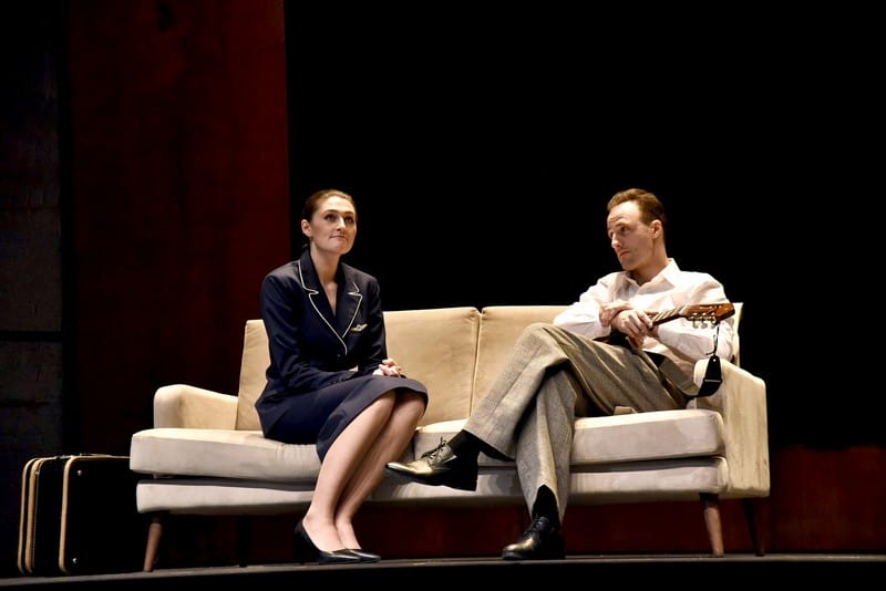 К сожалению, той самой любви, о которой говорила режиссер, в постановке совсем не просматривается. Физик Евдокимов и стюардесса Наташа в исполнении Павла Лёвкина и Надежды Флёровой играют так, что не то что любви, даже минутной страсти не видать. Диалоги эмоций не вызывают, взгляды страстью не пылают, жесты далеки от жизни.