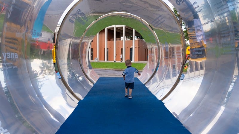Частью экспозиции о работе систем водоснабжения и водоотведения города стала настоящая стеклопластиковая труба диаметром три метра. Она состоит из трех секций по два метра каждый. Арт-объект служит зоной для проведения фотосессий.