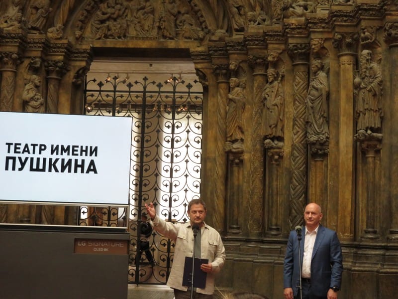 «Сегодня мы проводим наш традиционный сбор трупы в очень торжественном, красивом месте. Очень приятно, что имя Пушкина открывает нам двери в такие красивые здания. Музей изобразительных искусств имени Пушкина – это культурный символ столицы, нашей страны. Сегодня я рад, что мы, пушкинцы, вместе», – сказал художественный руководитель театра Евгений Писарев, приветствуя свой коллектив и собравшихся представителей СМИ.