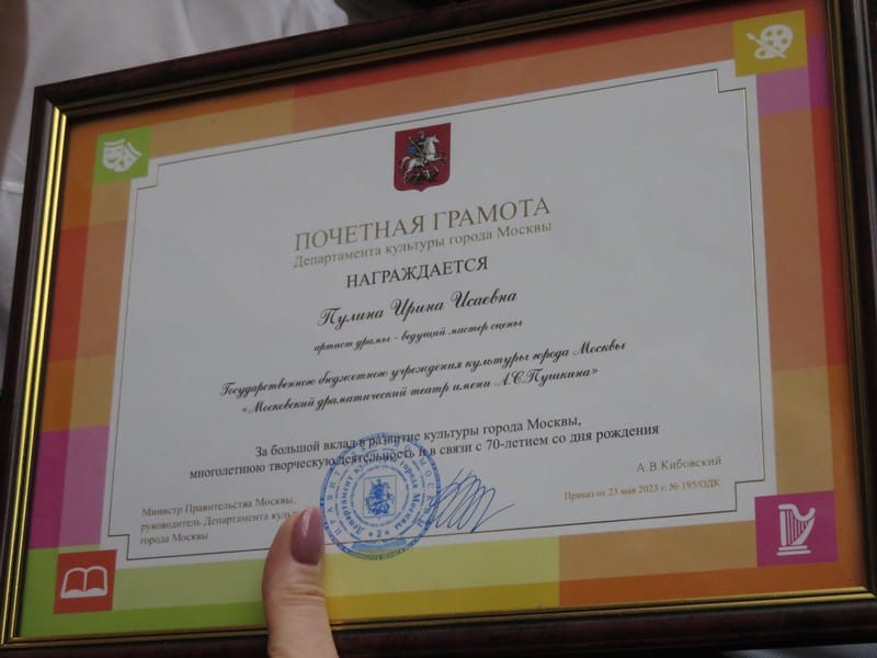 «Дело наше эфемерно, и стаж работы в театре отличается от стажа в любой другой профессии. После нас не остается никаких вещественных доказательств – ни скульптур, ни картин, ни нот. Уйдут зрители, которые видели наш спектакль на сцене, и все. Это для нас грандиозный вызов и умение жить в моменте. Если мы дорожим нашей профессией, то мы служим театру с радостью. Не превращаем наше дело в ежедневную рутину. В августе ушли большие артисты – Ирина Мирошниченко, Юлия Борисова, Вера Васильева, не чужой нашему театру Игорь Ясулович. Их жизни – пример высокого, радостного служения театру. Они много снимались, но их преданность театру была не героизмом или подвижничеством, это было большое счастье», – философски продолжил торжественное собрание Евгений Писарев.