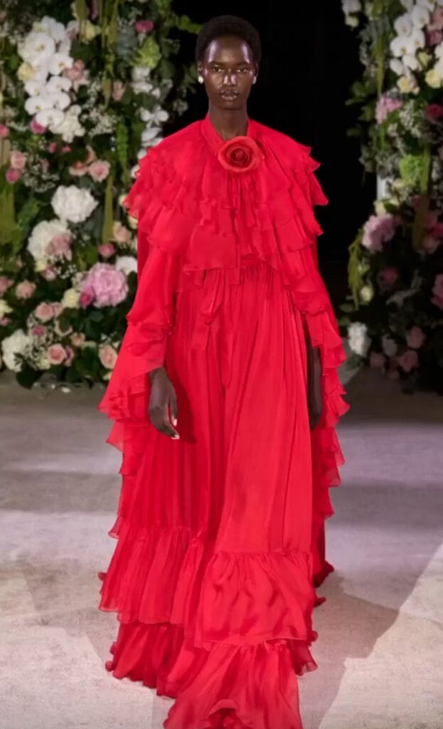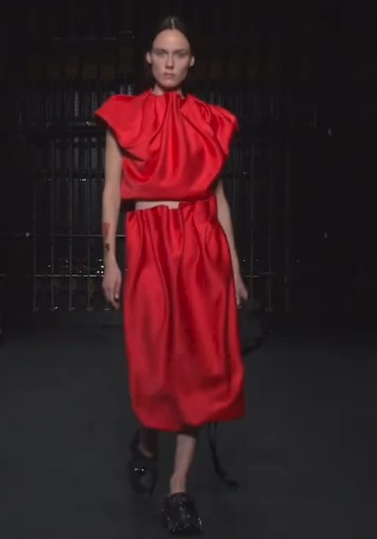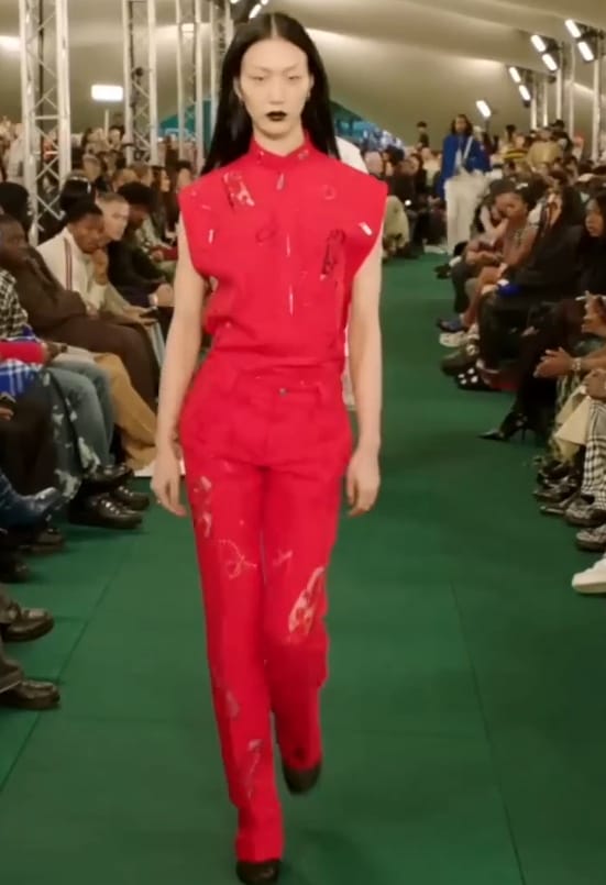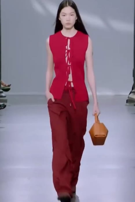 Одним из них стал красный тотал лук. Здесь и классический яркий алый оттенок, и грязный блеклый, и даже бордовый. Причем, судя по модели J.W. Anderson, сочетать в одном комплекте вещи разных оттенков вполне допустимо.
