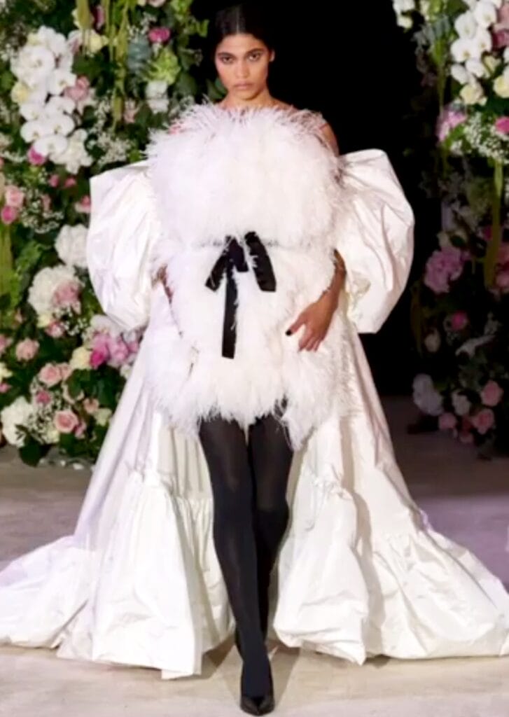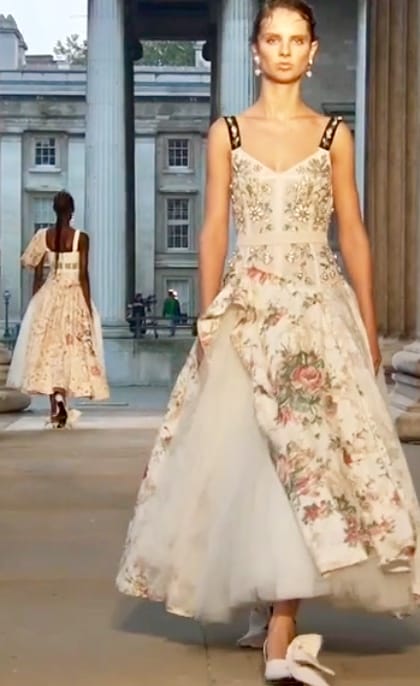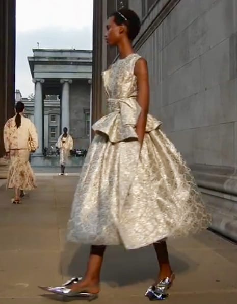 Также такой не новый тренд, как широкие юбки, дизайнеры лондонской недели многократно усилили при помощи кринолинов и нижних юбок.