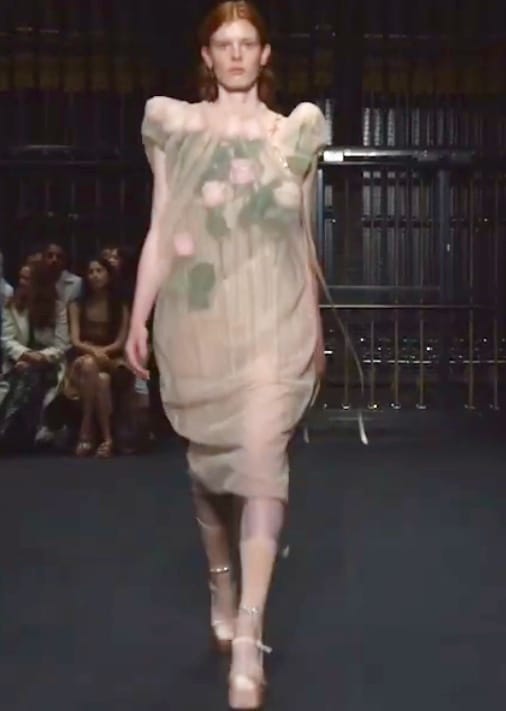 Цветочный рисунок и украшение одежды цветами, конечно, тоже совсем не новый тренд, но я считаю, что на лондонской неделе его вывела на новый уровень дизайнер Simone Rocha, заточив в свои изделия живые цветы.