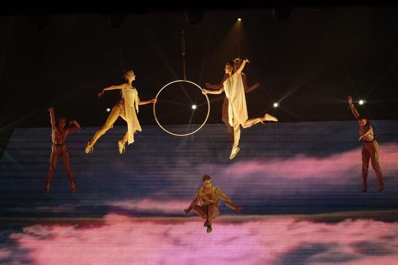 Артисты шоу невероятно талантливы, танцы поставлены отлично, есть акробатические номера буквально на пределе человеческих возможностей и самое уникальное – много полетов на тросах и воздушной акробатики, которая вызывает оторопь у зрителей. Из декораций – только большой мультимедийный экран площадью 100 квадратных метров с разными проекциями, да и нужно ли больше.