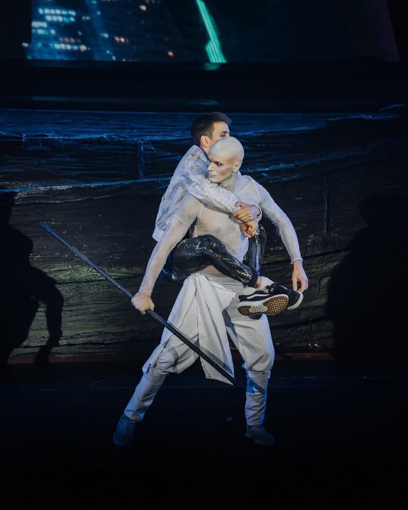 «Антигравитация» – переосмысление сюжета знаменитой книги «Чайка Джонатан Ливингстон»: красивая философская история о непохожести на других, мечте, стремлении к полету. У труппы поставки получилось театрально-цирковое шоу, с танцами и акробатикой – практически в стиле «Цирка дю Солей».