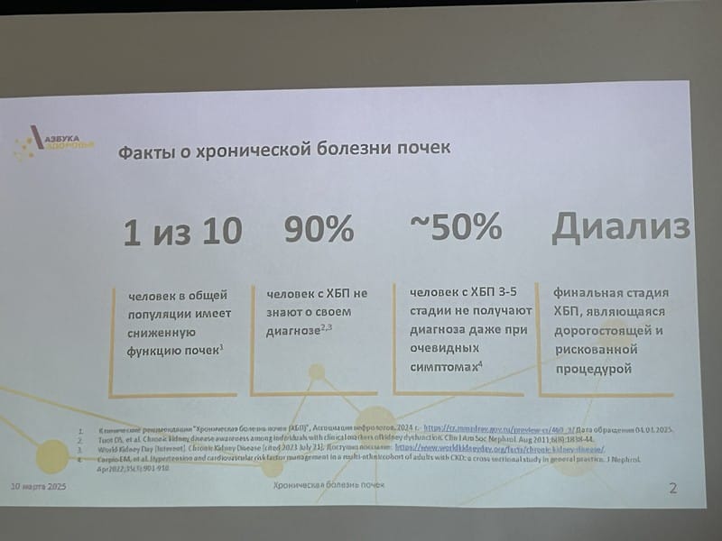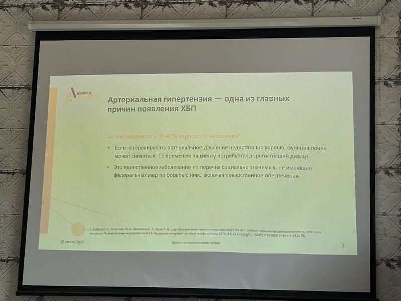 Кстати, артериальная гипертензия – это единственное социально значимое заболевание, которое не имеет льготного лекарственного обеспечения в России. При этом ХБП вообще не входит в список социально значимых заболеваний, и нет разработанных программ по диагностике и профилактике данного заболевания.