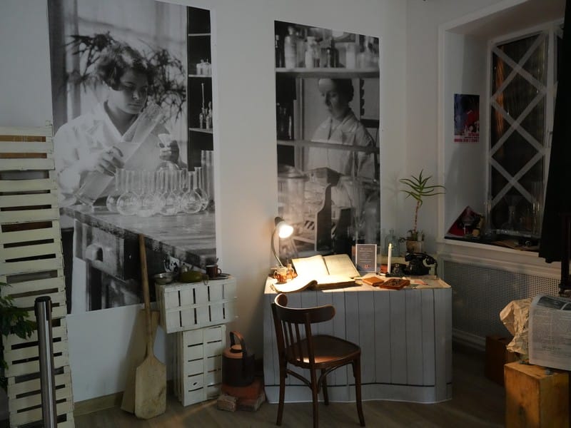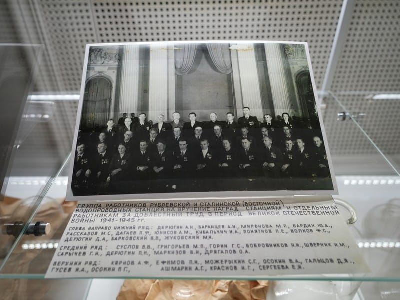 Сотрудники выставочного комплекса также воссоздали атмосферу лаборатории станции водоподготовки военного времени. Именно это место в тяжелые годы испытаний не только позволяло обеспечивать контроль качества воды, но и стало храмом науки. Посетители выставки увидят уникальные документы, среди которых подлинные записи и исследования Рублёвской и Сталинской водопроводных станций по хлорированию и дехлорированию воды, информация об использовании коагулянтов и способах их транспортировки, данные по отстаиванию воды и очистке фильтров, технические отчеты цеха очистки воды 1942 и 1943 годов, записи по качеству ресурса в реке Москве в 1944 году. На экспозиции представлены также и предметы быта, военная форма, награды, инструменты, применявшиеся для исследований воды.