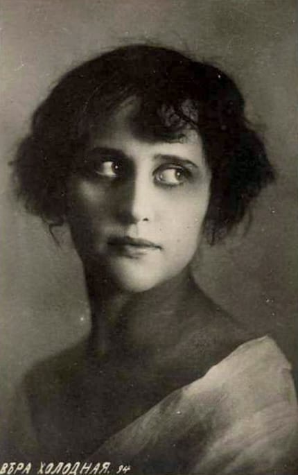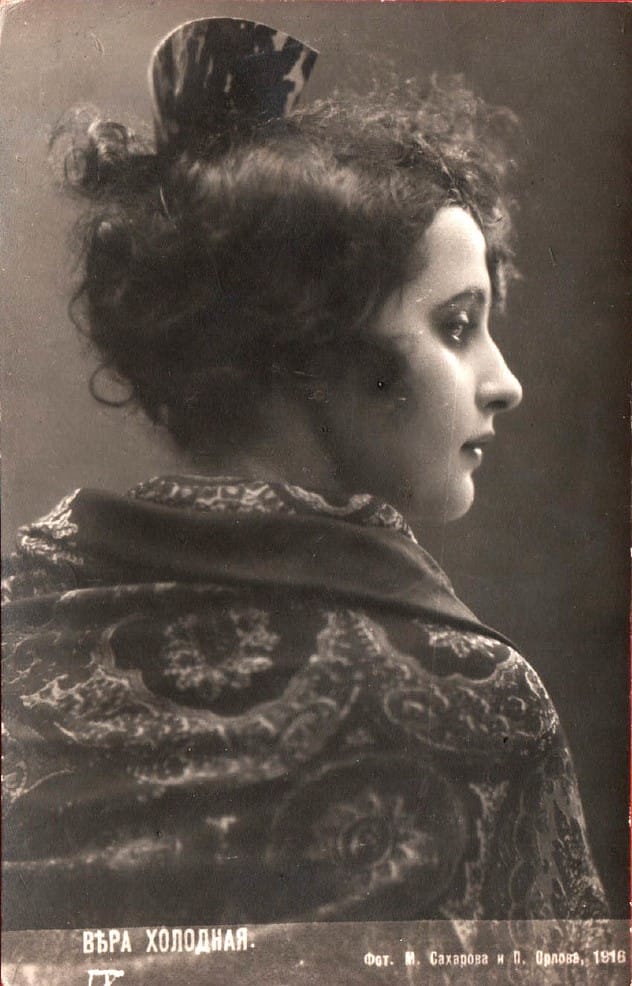 «Среди моих тогдашних знакомых была очень красивая молодая женщина, жена прапорщика Холодного – Вера Холодная, – рассказывал Александр Вертинский в своей книге воспоминаний «Дорогой длинною…». – Как-то, повстречав ее на Кузнецком, по которому она ежедневно фланировала, я предложил ей попробовать свои силы в кино. Она вначале отказывалась, потом заинтересовалась, и я привез ее на кинофабрику и показал дирекции. Холодная понравилась. Постепенно ее стали втягивать в работу. Не успел я, что называется, и глазом моргнуть, как она уже играла картину за картиной, и успех ее у публики возрастал с каждой новой ролью. (…) Я был, конечно, неравнодушен к Вере Холодной, как и все тогда. Посвящая ей свою новую, только что написанную песенку «Маленький креольчик», я впервые придумал и написал на нотах: «Королеве экрана». Титул утвердился за ней. С тех пор ее так называла вся Россия и так писали в афишах. Я часто бывал у нее и был в хороших отношениях и с ней, и с ее сестрой, и с ее мужем. А с ее маленькой дочерью Женечкой я играл в детской, дарил ей куклы и был, в общем, свой человек у них. Вера всегда помнила, что я впервые подсказал ей путь в кино. Из никому не известной молодой женщины она сделалась кинозвездой. Многие свои песни я посвящал ей. Как-то, помню, я принес ей показать свою последнюю вещь «Ваши пальцы пахнут ладаном». Я уже отдавал ее издателю в печать и снова посвящал Холодной. Когда я прочел ей текст песни, она замахала на меня руками:
